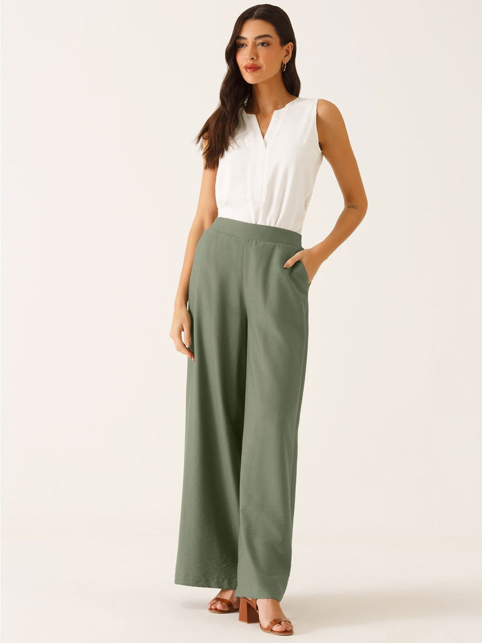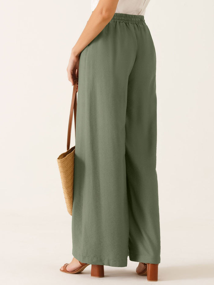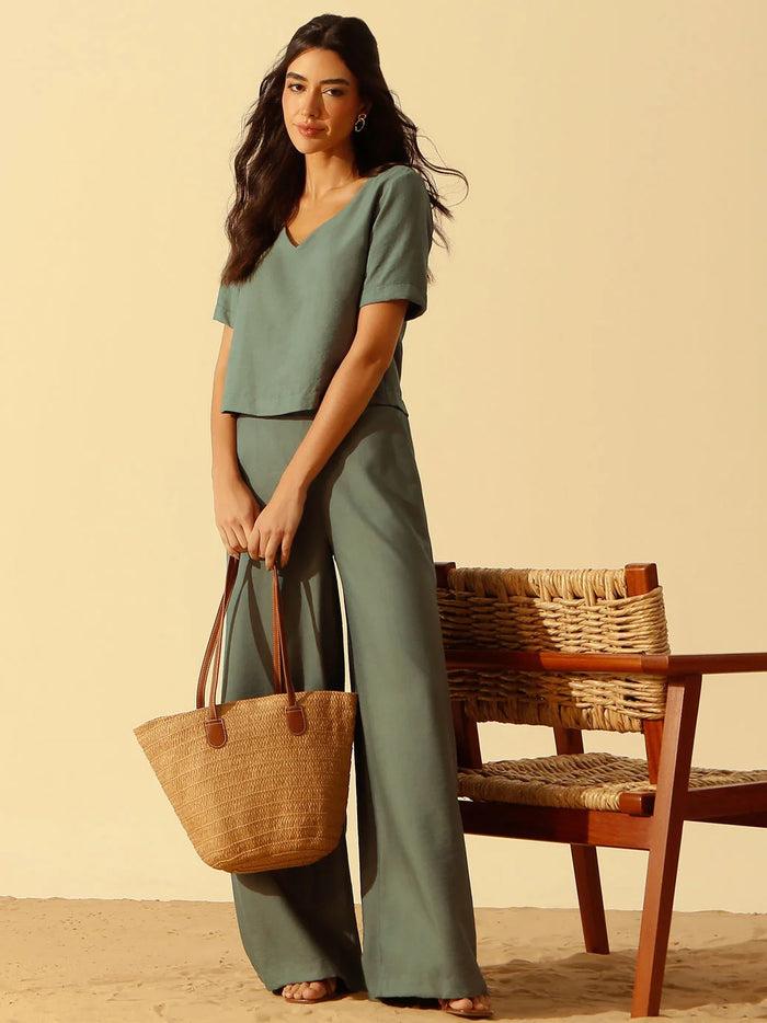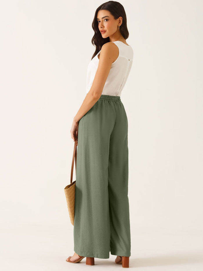 Calça Alfaiataria Pantalona em Viscose Verde Oliva Salete